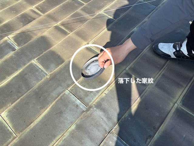 また、家紋の落下による損傷は火災保険の「風災・物体落下被害」として認められるケースがあるため、申請サポートも併せて行いました。