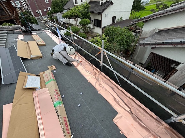 銅板屋根とは、純銅(じゅんどう)を薄く伸ばした金属屋根で、日本建築や神社仏閣にも古くから使用されています。