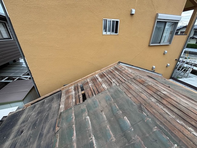 ところどころ破れや水シミが広がっており、長年の雨水浸入が見受けられました。