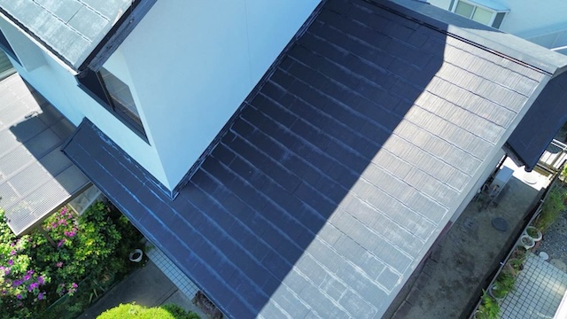屋根はコロニアル(スレート)と呼ばれる薄型の屋根材で、軽量で見た目もスッキリしている人気の屋根材ですが、
