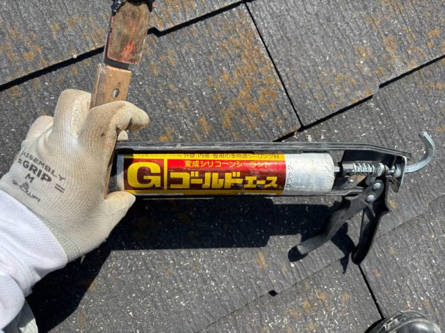 そのまま放置してしまうと、雨漏りや構造部の腐食につながるリスクが高いため、早急な補修が必要と判断し、耐久性・防水性に優れたシーリング材「ゴールドエース」を使用して補修工事を行いました。