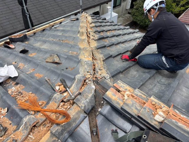 撤去後は、下地の状態(瓦桟や葺き土)を確認し、必要があれば補強・修繕を施します。