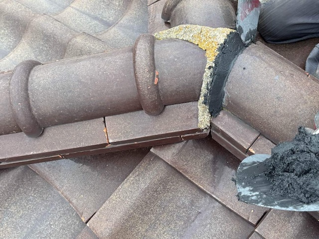 詰め増しした漆喰が棟瓦と下地の隙間をしっかりと埋めているため、雨水の侵入経路が完全に遮断されました。