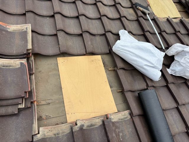 雨漏りが発生していた屋根の該当エリアについて、すべての瓦を一時的に撤去しました。
