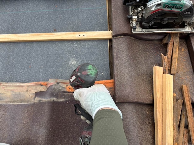 次に、瓦を並べ直すための「桟木(さんぎ)」と呼ばれる木材を新しく設置します。