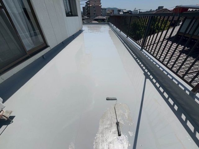 ウレタン防水材の層が乾いたら、最後の仕上げとして「トップコート」を塗布します。