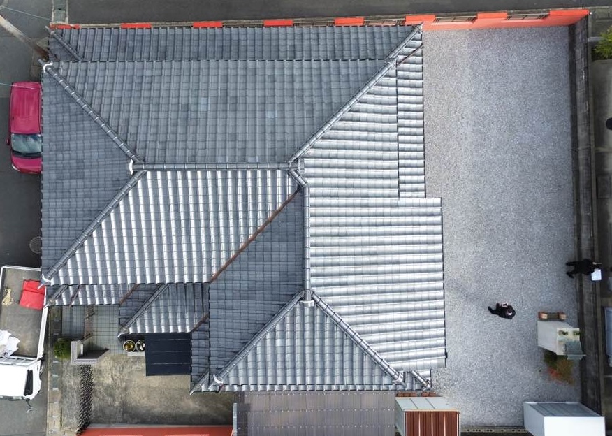 瓦屋根は一枚一枚の瓦を組み合わせて施工されています。