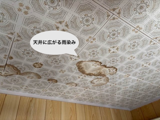 これまでの雨では何ともなかったのに、近年のバケツをひっくり返したような集中豪雨の際、ついに室内の天井に雨染みが現れてしまったとのこと。