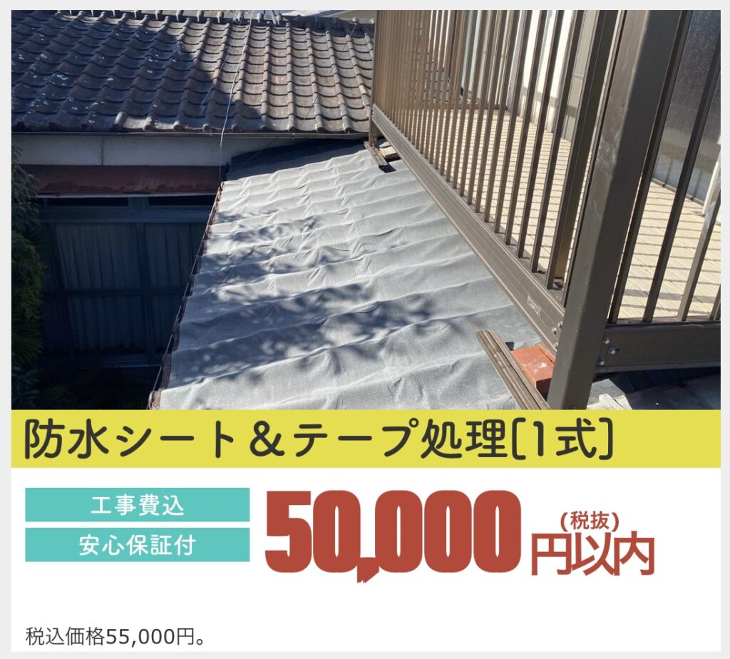 – あくまで応急処置なので、防水シートやテープは経年劣化で剥がれるリスクがある。 - 根本的な屋根補修にならない