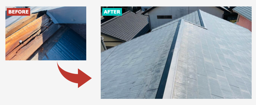 | 工事内容 | 谷板金交換工事、棟瓦積み直し工事 |