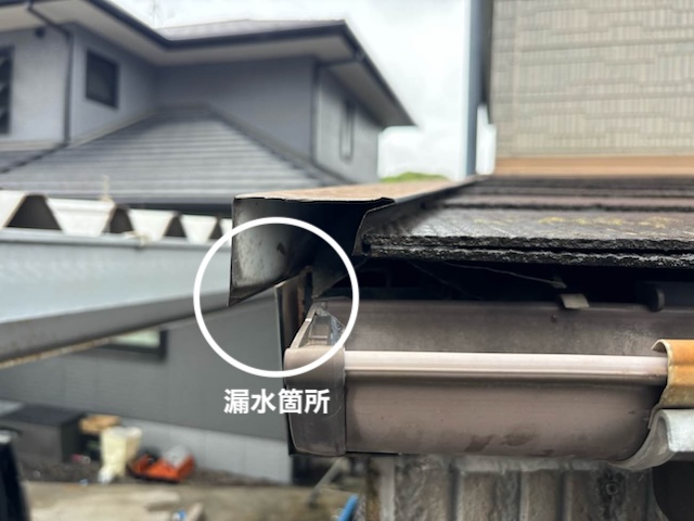 軒先に取り付けられているはずの軒先板金が付いておらず、直接雨水が入り込み、雨漏りが発生していました。