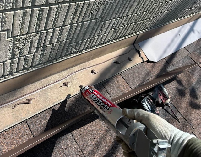 屋根と外壁の境目は構造上、隙間ができやすい部分です。そこへ板金を設置することで、雨水が侵入するのを防ぐ役割があります。施工完了