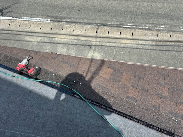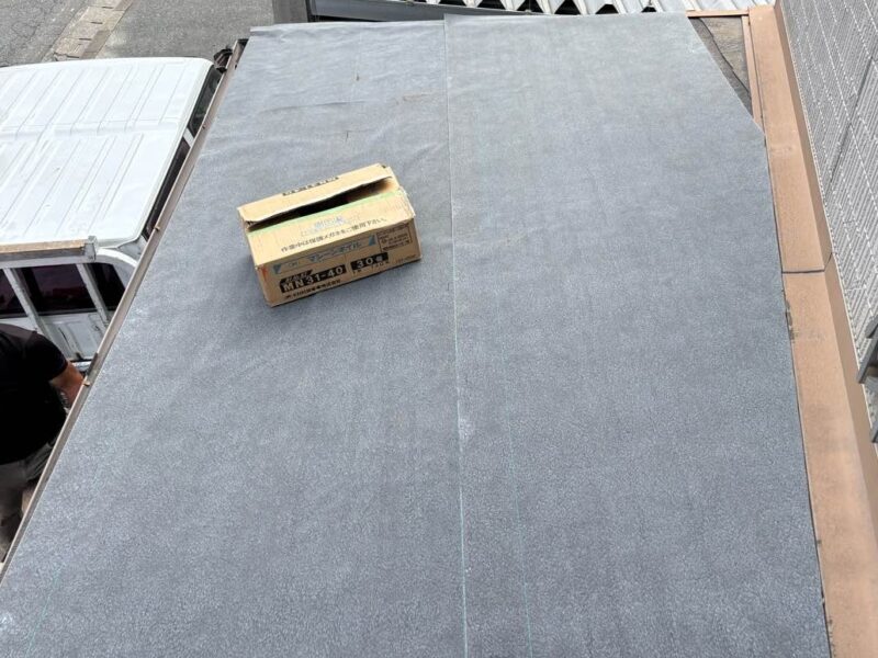 防水シートには、屋根材の隙間から万が一雨水が侵入しても、構造体内部に水が到達するのを防ぐ役割があります。軒先板金設置