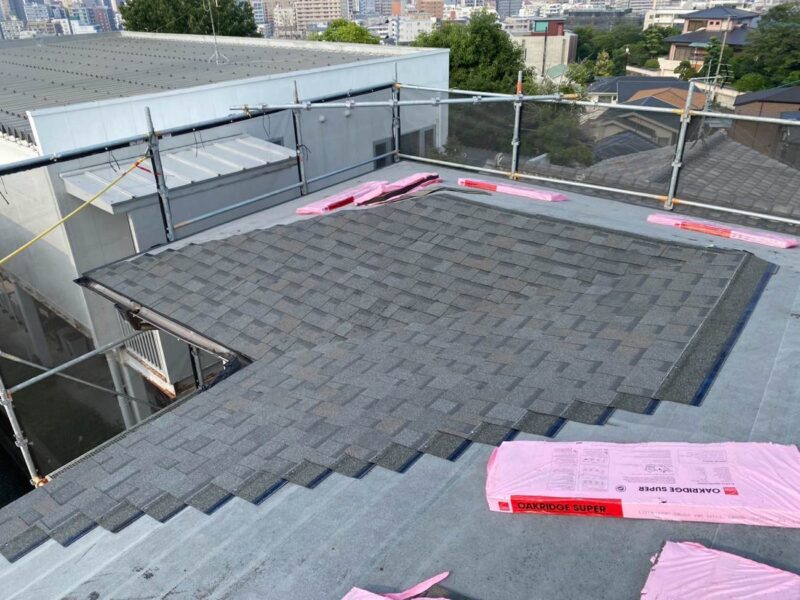 今回採用した屋根材【オークリッジスーパー】には、軽量で高い耐震性・耐久性・防水性に優れているといった特徴があります。