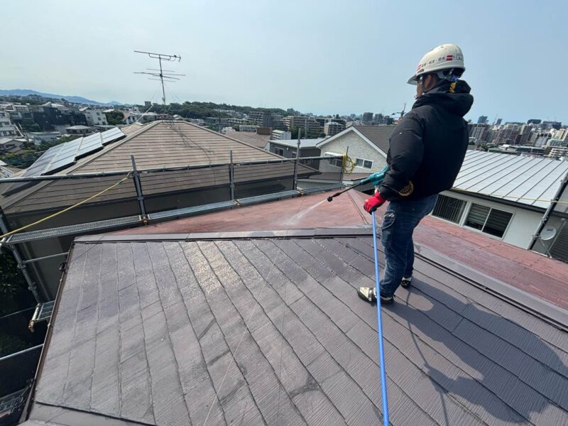 高圧洗浄を行うことで、屋根に付着したカビや汚れを徹底的に洗い流します。