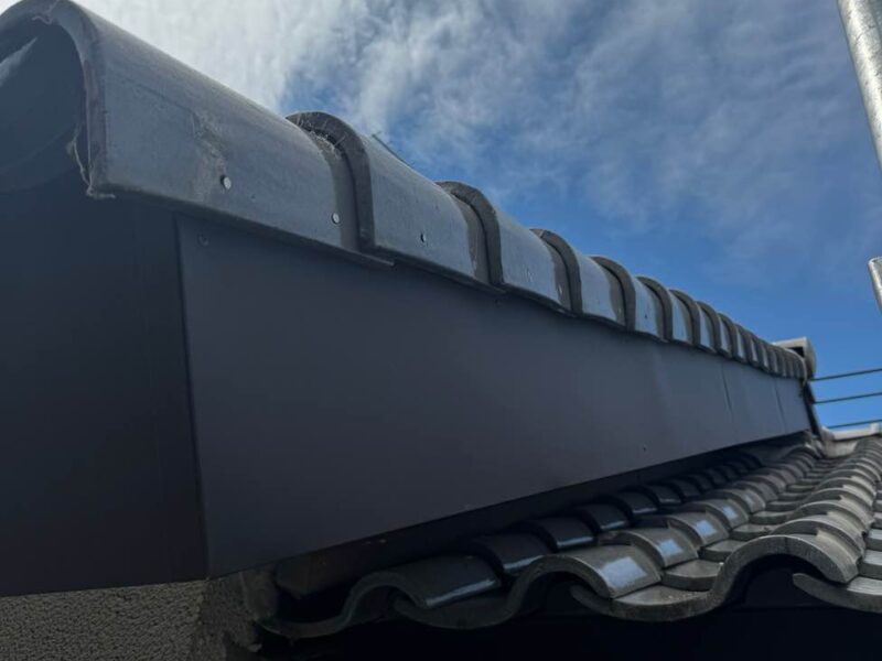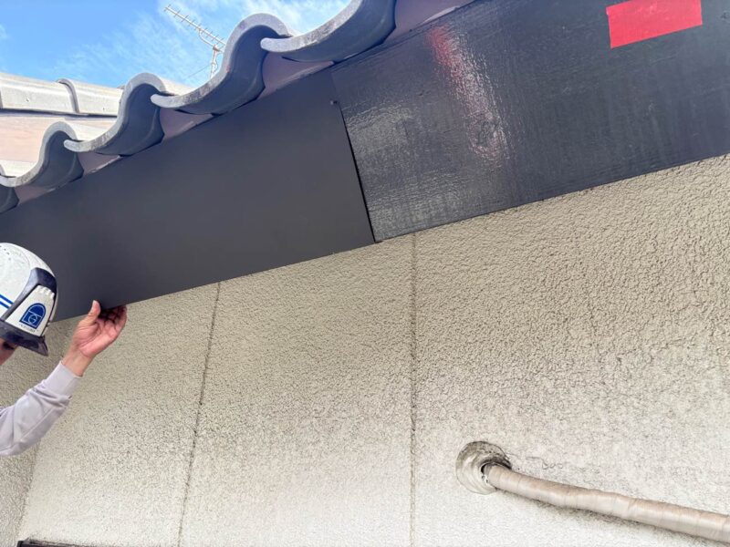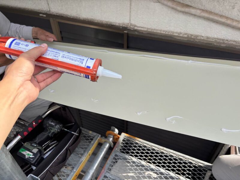 板金に接着剤をつけ、既存の破風板の上に取り付けていきます。破風板に板金を取り付けることで、外観を長期間キレイに保ち、防水性能が向上する効果があります。