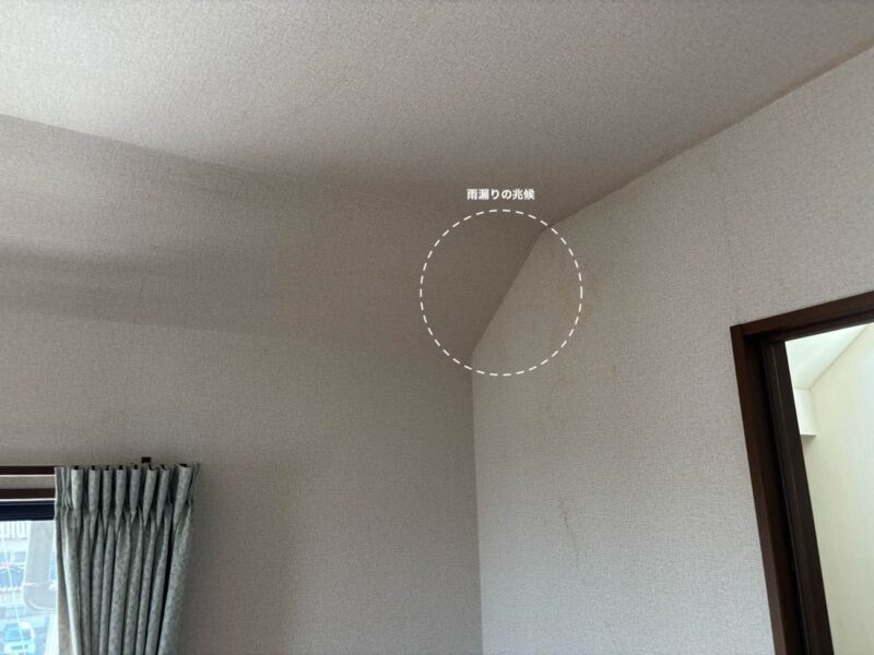 室内の3階天井部分に雨漏りの兆候を確認しました。
