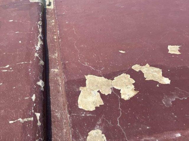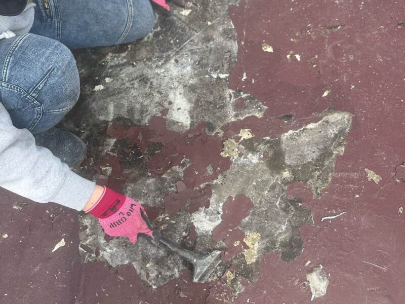 まず、既存屋根の剥がれた塗膜を除去し、屋根表面を整えるケレン作業を行います。