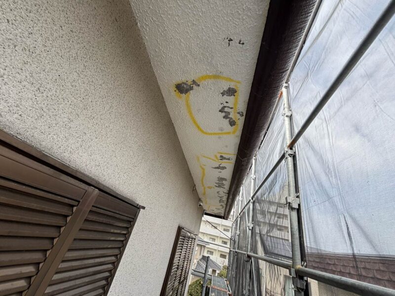 お客様より「屋根の塗装、軒天井が剥がれてきているので見に来て欲しい」とのご依頼がございました。