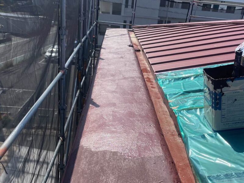 経年劣化が進行し、塗装が剥がれて屋根表面が剥き出しになっている状態でした。このまま放置すると、塗装の剥がれた部分から雨水が侵入し、防水性が低下。結果的に、建物の寿命を縮める恐れがあります。