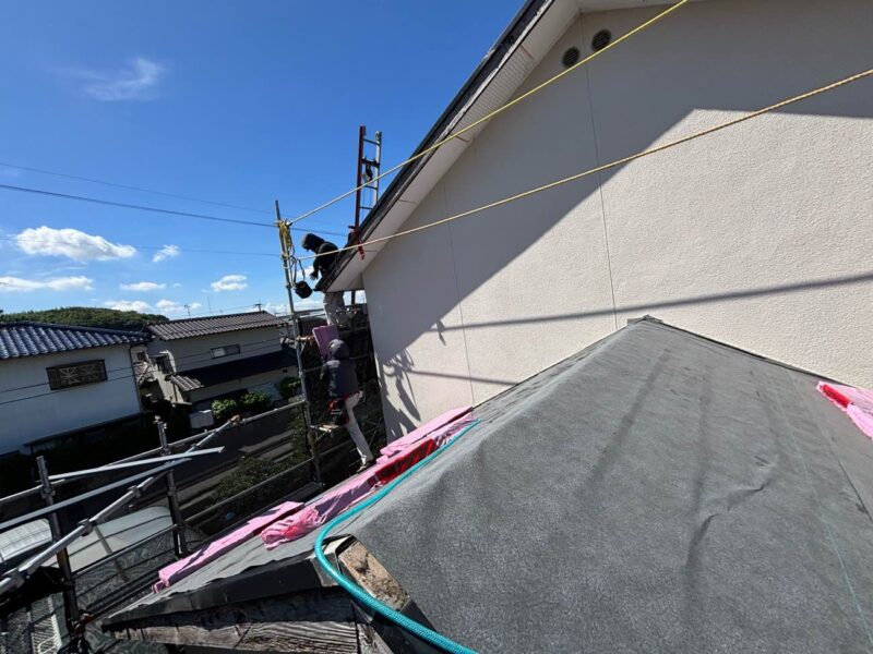 防水シートの上から、新規屋根材【オークリッジスーパー】を施工します。