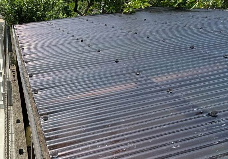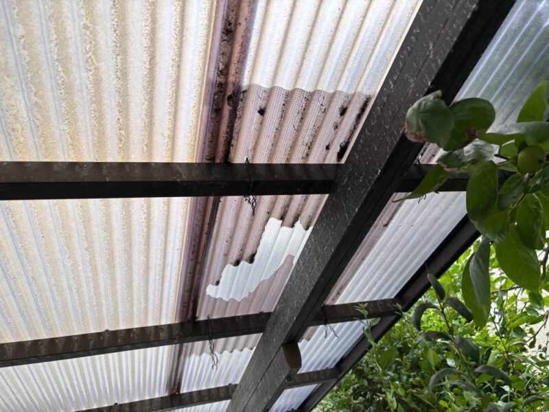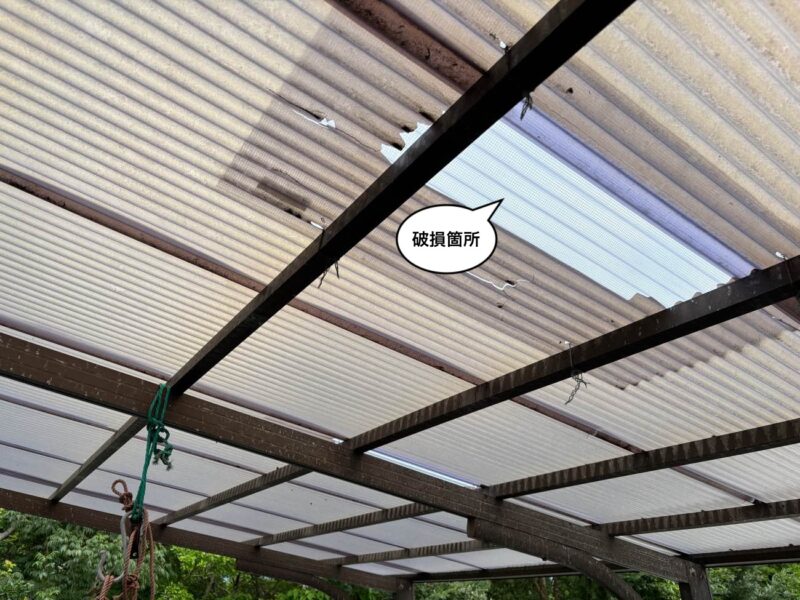 お客様より「駐車場の波板屋根が劣化していて穴が空いている」とお問合せがございました。