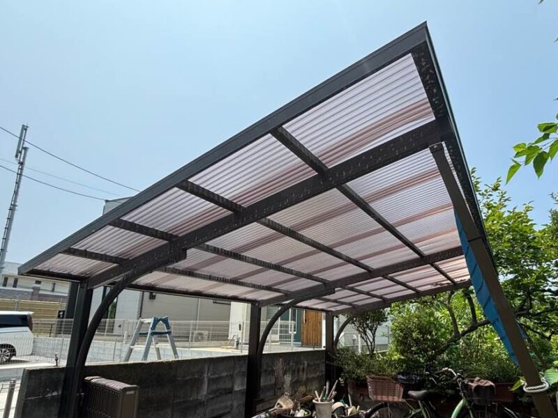 【宇美町の皆様へ】波板交換工事事例|劣化により破損した駐車場屋根をポリカーボネートで明るく変身!