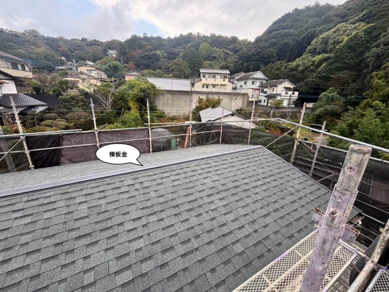 棟板金は、雨水の浸入を防ぎ、屋根材を上から押さえて強風による飛散を防止する重要な役割を担っています。