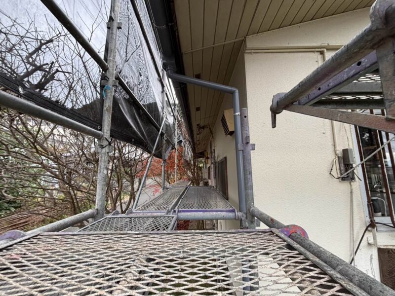 まずは職人の安全確保と、丁寧な作業のために足場を組みます。その後、現在の屋根の状態を改めて点検し、汚れを清掃します。