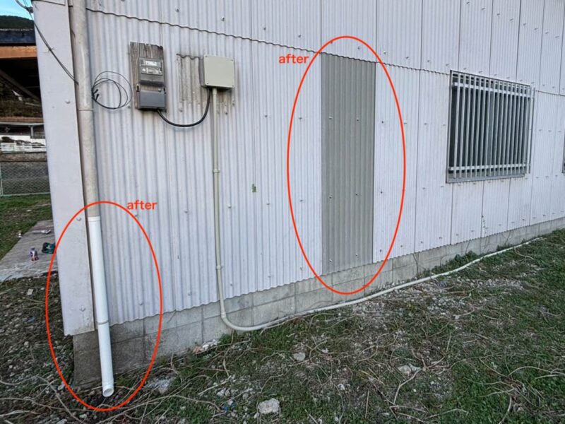 今回は、「倉庫の外壁補修(小波スレート交換)」と「雨樋(縦樋)の修繕工事」の様子を詳しくレポートします。