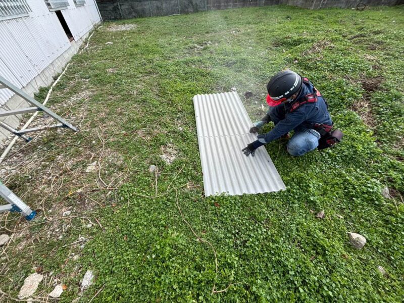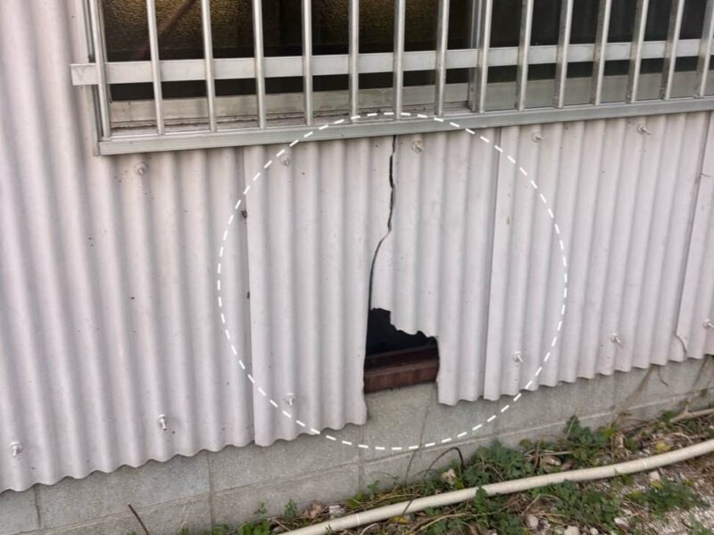 小波スレートは非常に丈夫な素材ですが、築年数が経過すると柔軟性が失われ、衝撃に弱くなります。