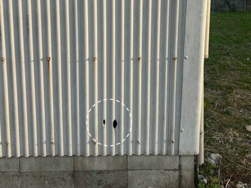 複数箇所で、スレート材の穴あきを確認しました。
