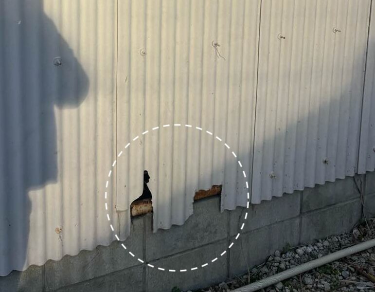 外壁の穴は、雨水が直接倉庫内へ侵入する原因となります。こうした小さな穴からネズミなどの小動物が入り込み、内部で糞尿被害を及ぼしたり、断熱材を荒らしたりするリスクが非常に高くなります。