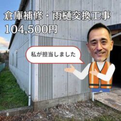 「倉庫の外壁に穴が開いているのを見つけた。雨が吹き込んだり、動物が入り込んだりしないか心配。ついでに割れている雨樋も直してほしい。」