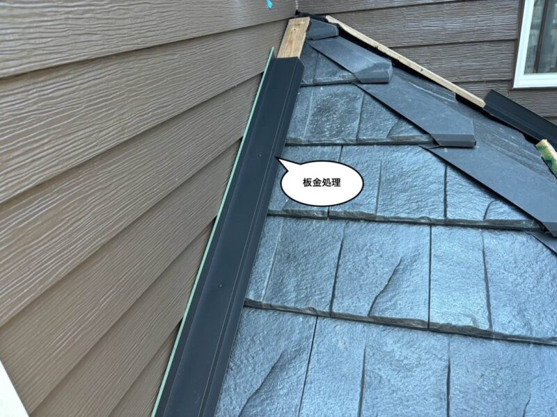 現場の形状に合わせて加工した専用の役物板金を設置します。