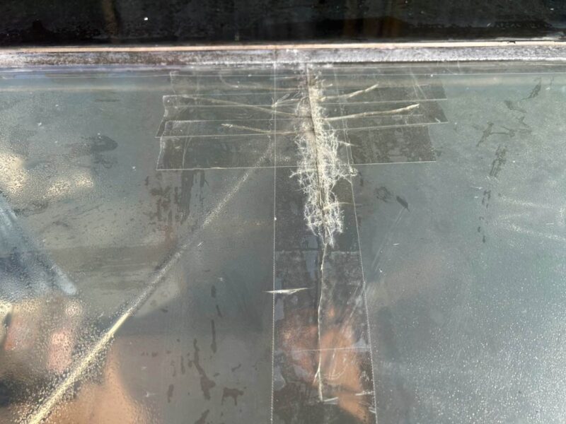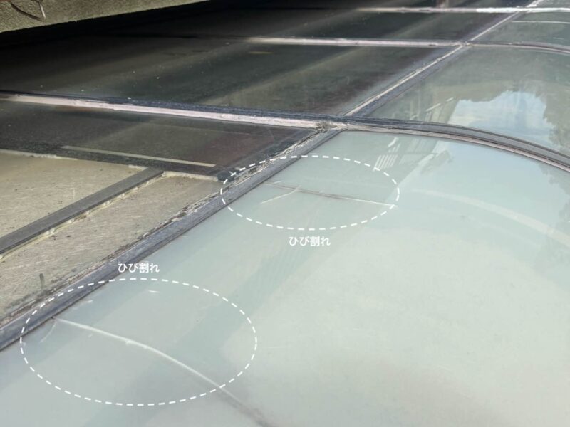 サンルームのパネルに複数の大きなひび割れを確認しました。