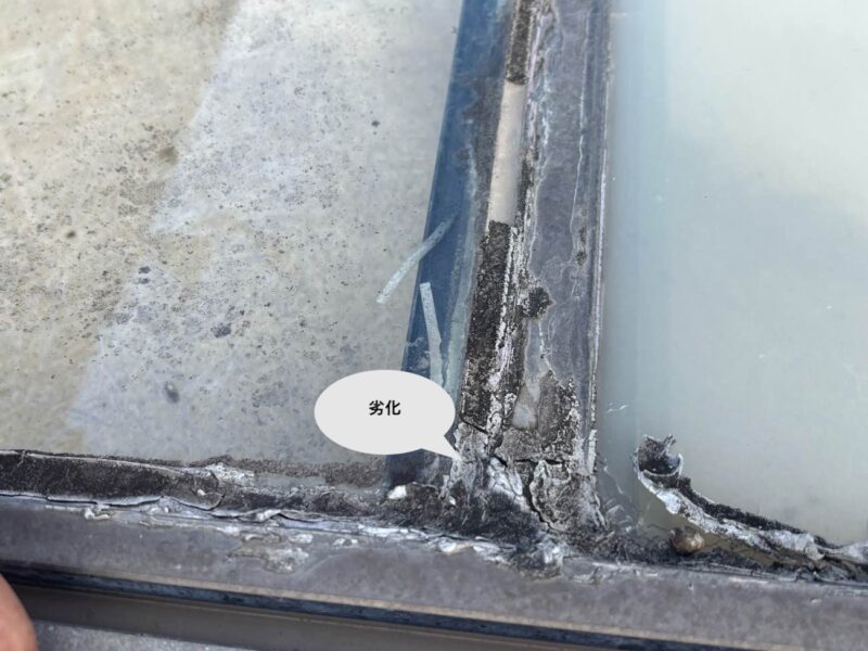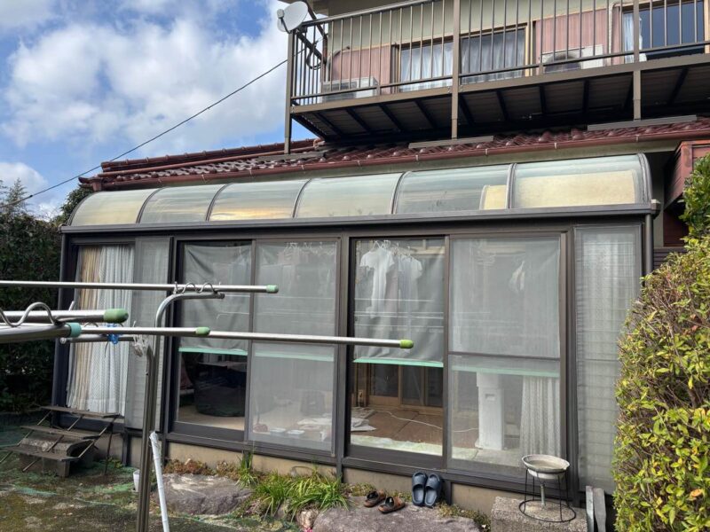 お客様はこれまで、サンルームの継ぎ目やひび割れに対して、ご自身でシーリング処理(隙間埋め)を行うなど、こまめにメンテナンスを続けてこられました。